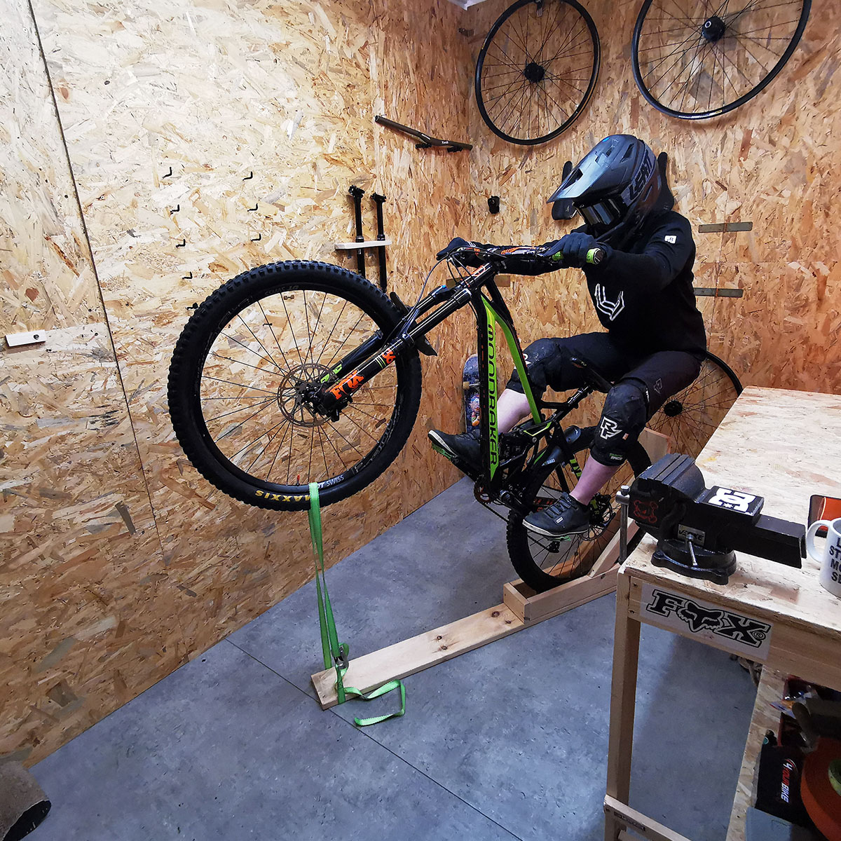 Dzisiaj pokażemy Wam jak! Poszperaliśmy trochę w intrenecie i udało nam się znaleźć instrukcje do samodzielnego wykonania urządzenia treningowego pod manuala! Na rynku mamy już kilka urządzeń, które można kupić, ale są one słabo dostępne i kosztowne, dlatego zrobimy je sami! Wykonanie konstrukcji zajęło nam łącznie 2-3 godziny i nie wymagało posiadania zaawansowanych umiejętności czy narzędzi. Nasz projekt dostosowaliśmy pod siebie i stworzyliśmy go z materiałów, które były pod ręką, dlatego nie przejmuj się jak twoje dzieło będzie się różnić od tego co my stworzyliśmy, najważniejsze by poprawnie działało! W stworzeniu naszego urządzenia posiłkowaliśmy się filmikiem „Kyle & April – Ride MTB”, który pokazuje, jak zrobić robotę, dlatego ich kanał serdecznie polecamy.